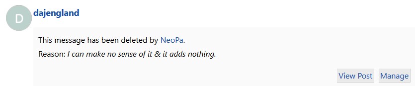 That post was deleted by me. I didn't spam-ban them as it had no link and I just saw no sense to it at all. It was positioned before post #4. Do you not see that? It may be that such info is only visible to Moderators. Can you confirm for me.