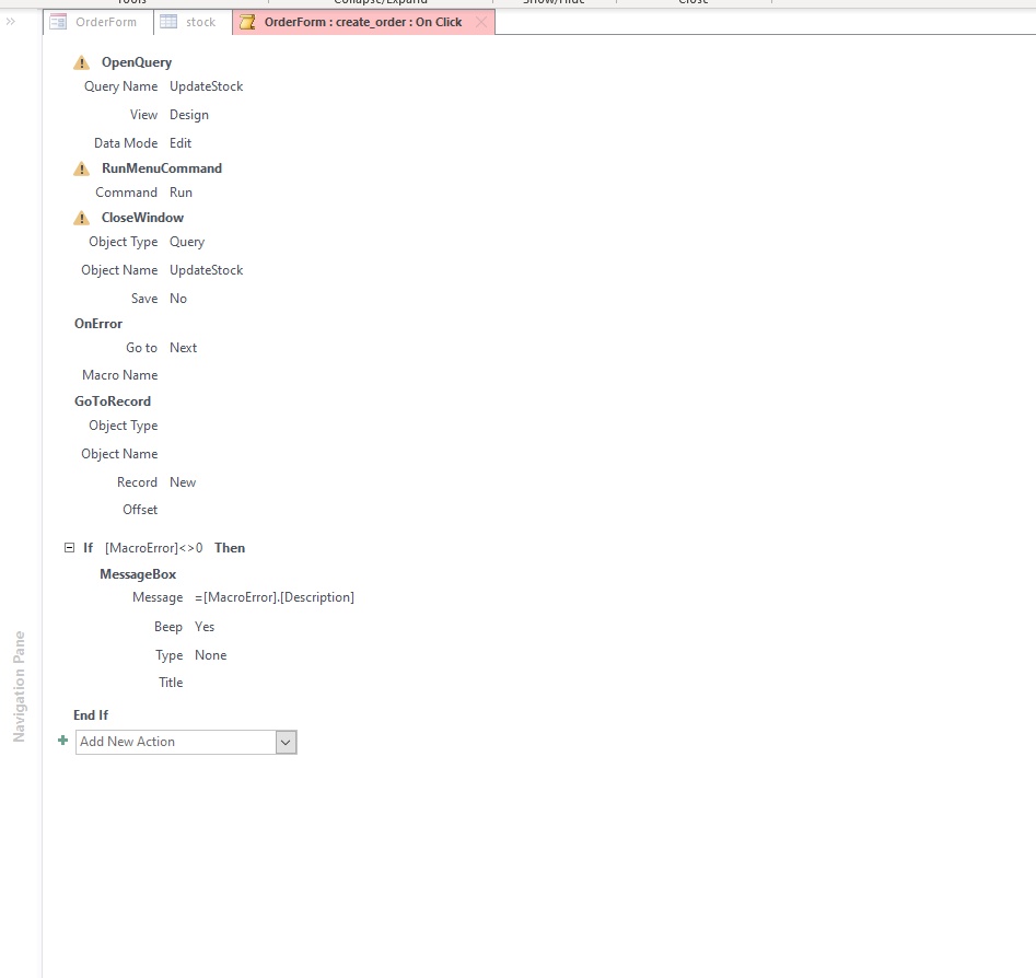 I have a form that is used for creating orders of products on my database. My goal is to subtract the order.quantity field from the stock.stock_qua ntity field through the use of an update query. In order to target the specfic stock record, when the customer picks which stock they want in the order form, I use the order.stock_id field to pick which stock record I target.