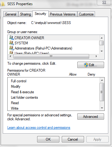 After deployment and checked security tab in properties of deployed folder,which is in rootwww folder it does not show iusr(internet user) option.