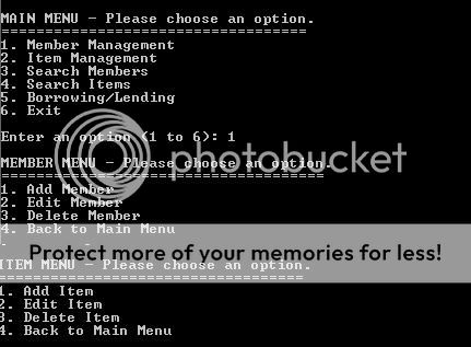 So far I have only looked at Item and Member Management (option 1 and 2)
