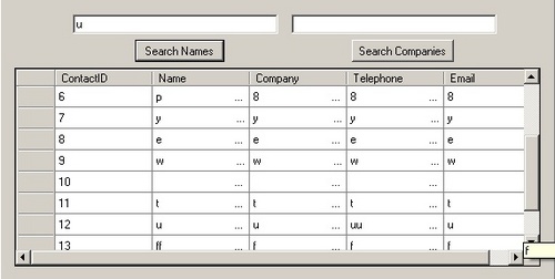 but search is the problem, when ever i try to perform the search the datagridview control displays all the data present in the database.
