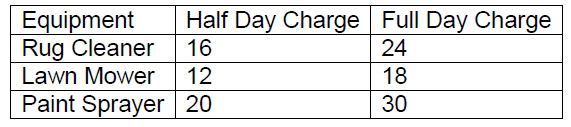 3-Eddie Charges one amount for full day rentals and another amout for half days.