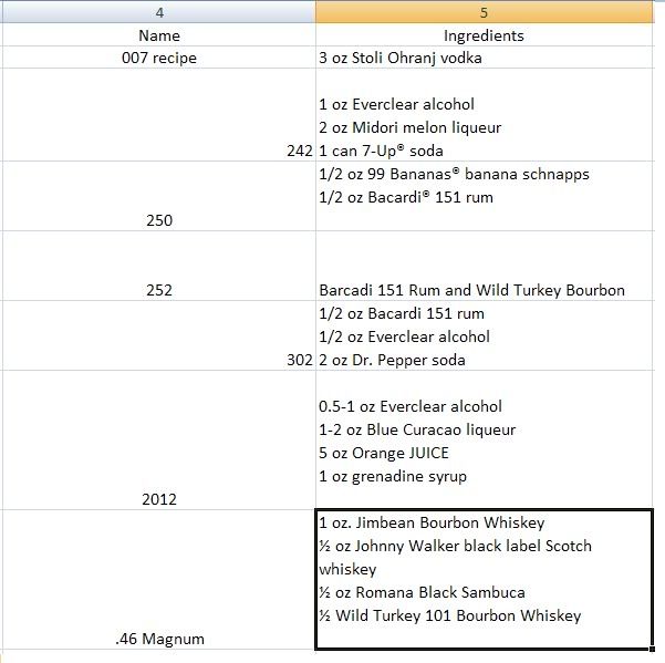 If the ingredient is found in a cell, say E5, then I need to have a code that would be able to pick up the name of the recipe that contains the ingredients (name would be in D5). I attached a picture of how my data base look.